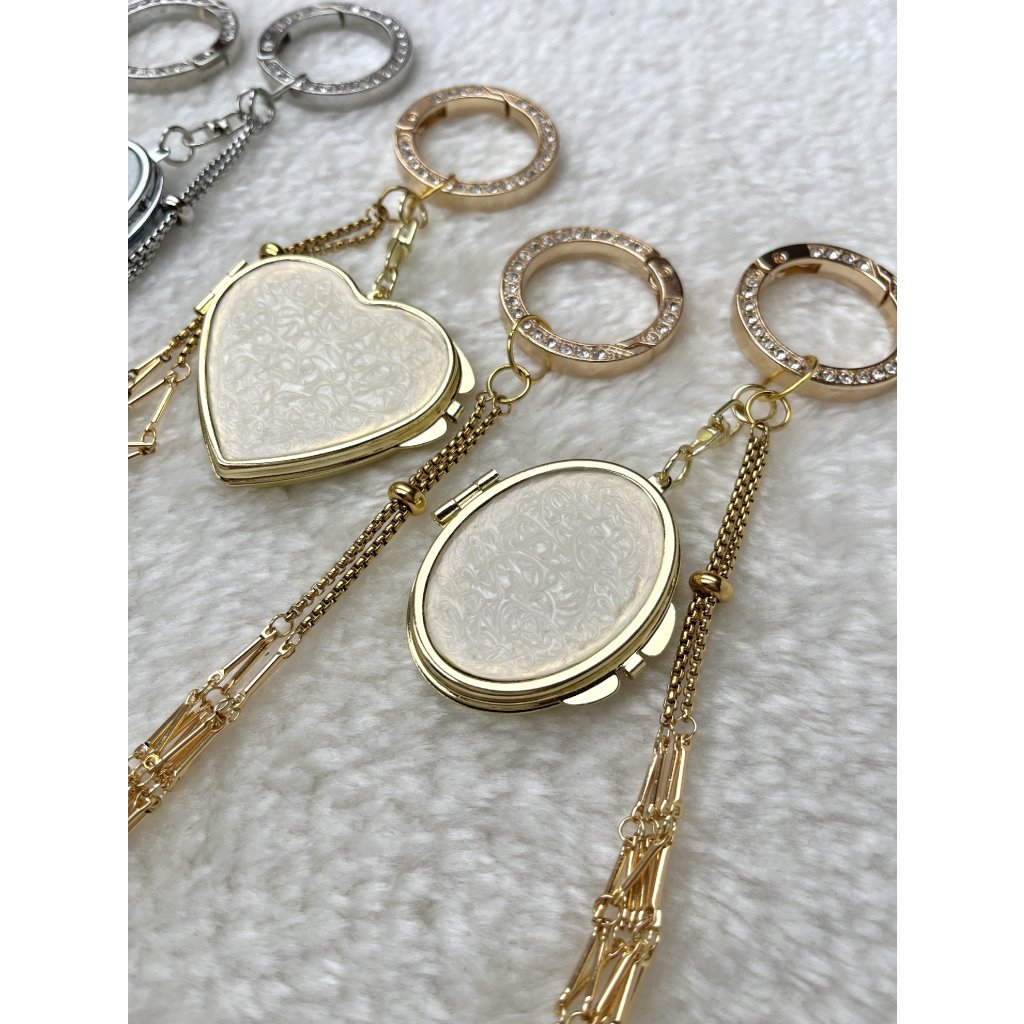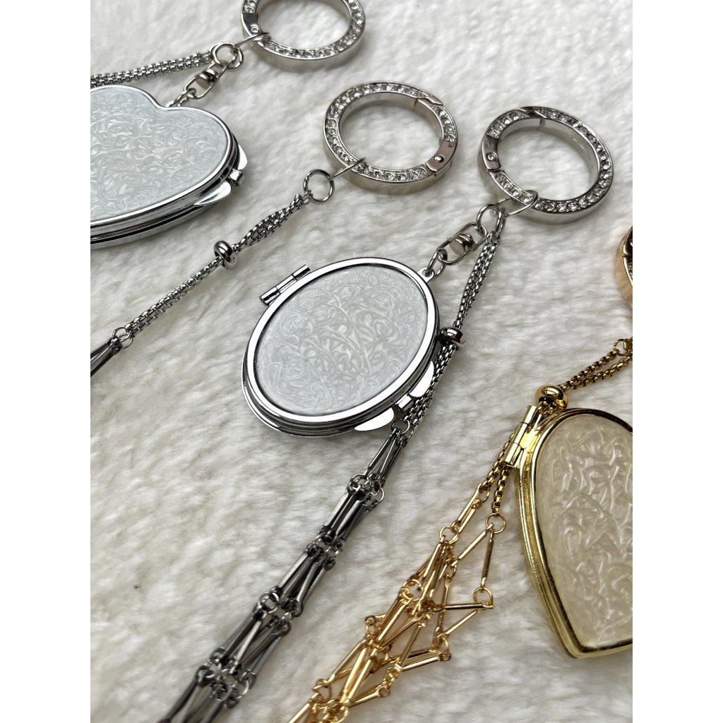 Használható táskadíszként (charm), kulcstartóként, övre vagy amire csak szeretnéd - egyedül a fantáziád szabhat határt, hogy mit díszítesz vele! 😊 A tükör első külső része gyöngyházfehér díszítésű. Kompakt és könnyű hálós rúzstartó rozsdamentes acélból - arany vagy ezüst színben, színenként több változatban kapható. Az őszi/téli időben akár mini kézkrém tárolására is tökéletes, így bármikor kéznél lesz, nem kell mindig a "női táskában" kutatni utána 😉 Hossza kb. 15 cm, a lánc, illetve háló anyaga titán acél (ezüst színű), illetve 18 karátos aranyozású rozsdamentes acél (arany színű). Választható ovális, vagy szív alakú tükörrel, illetve tükör nélkül is!